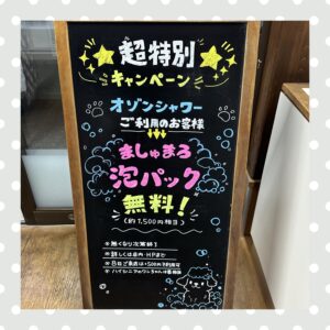 オゾンシャワーご利用のお客様に、ましゅまろ泡パック(1500円相当の全身パック)を無料施術致します!!